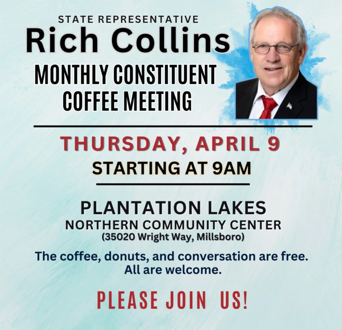 Join Christie and I in attending Rep. Rich Collins monthly Coffee Meeting.